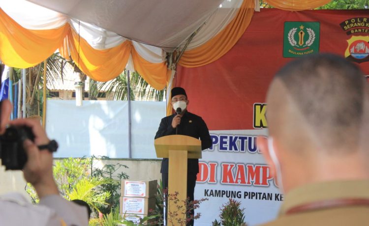 SERANG, – Wakil Gubernur Banten Andika Hazrumy memanfaatkan momen kunjungan ke Kampung Tangguh Nusantara (KTN) di Kampung Pipitan, Desa Pipitan, Kecamatan Walantaka, Kota Serang, Selasa (25/8/2020), untuk mensosialisakan Peraturan Gubernur Nomor 38/2020 tentang Penerapan Disiplin dan Penegakan Hukum Protokol Kesehatan Sebagai Upaya Pencegahan dan Pengendalian Covid 2019. Wagub menegaskan, Pergub yang diantaranya mengatur tentang wajib memakai masker di tempat-tempat umum tersebut bukan bertujuan untuk menghukum masyarakat melainkan untuk memberi pemahaman tentang bahaya Covid-19 bagi masyarakat apabila tidak disiplin protokol kesehatan.