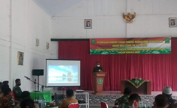 Dalam komsos tersebut, Kasdim 0603 Lebak Mayor Inf Mohammad Zaini mengajak seluruh elemen masyarakat untuk menolak penyebaran paham radikalisme, separatisme, terorisme dan intoleransi diwilayah Kabupaten Lebak.