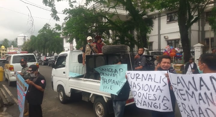 Pandeglang – Puluhan Wartawan yang tergabung di Jurnalis Nasional Indonesia (JNI) Banten, melakukan aksi Unjuk Rasa (Unras) ke kantor BRI Cabang Pandeglang, yang berlokasi di Kelurahan Pandeglang, Kecamatan Pandeglang, Banten, (03/12/20).