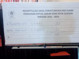 Sementara itu, dari hasil musyawarah kota Koni Kota Cilegon yang dilakukan melalui proses pemilihan secara demokrasi, Abdul Salam Salim berhasil memperoleh 26 suara, dan disusul oleh Muharman Koto memperoleh 22 suara.