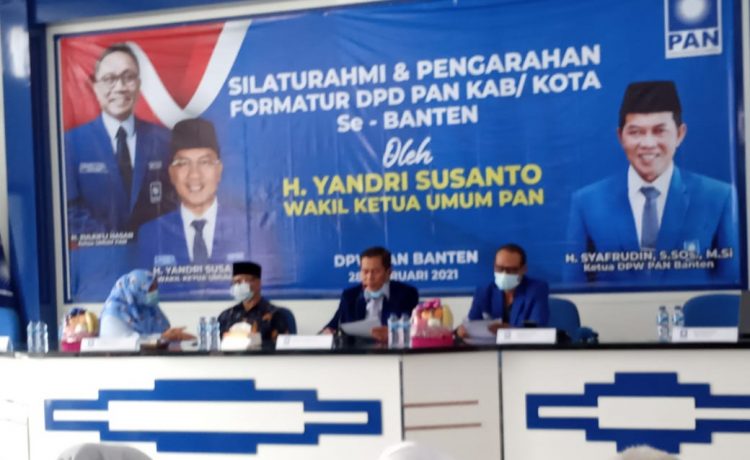SERANG – Dewan Pimpinan Pusat (DPP) Partai Amanat Nasional (PAN) menggelar Silaturahmi dan Pengarahan Formatur Dewan Pimpinan Daerah (DPD) PAN se-Kabupaten/Kota di Provinsi Banten yang bertempat di Kantor Dewan Pimpinan Wilayah (DPW) PAN Banten, Minggu (28/02/2021).