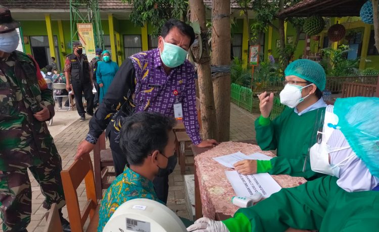 Dalam pelaksanaan Vaksinasi di SMPN 1 Pasar Kemis, Sekda yang juga Sekretaris Satgas Covid-19 Kabupaten Tangerang meninjau langsung, mulai dari pendaftaran, screning kesehatan, hingga protokol kesehatan jaga jarak sampai dengan observasi menunggu sertifikat vaksin.