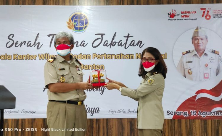 SERANG – Jabatan Kepala Kantor Wilayah Badan Pertanahan Nasional (BPN) Banten diserahterimakan dari Andi Tenri Abeng kepada Rudi Rubijaya yang bertempat bertempat di Aula Baduy Kantor Wilayah Badan Pertanahan Nasional, Senin (16/08/2021).