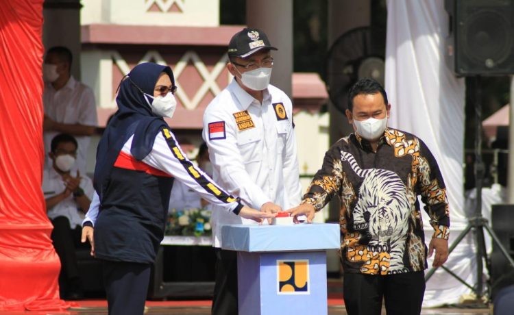 SERANG – Wakil Gubernur Banten Andika Hazrumy bertindak selaku pemimpin. pada kegiatan Aksi Daerah dalam rangka memperingati Hari Jalan Nasional (HJN) yang digelar Badan Pelaksanaan Jalan Nasional Provinsi Banten Kementerian PUPR di Alun-alun Barat Kota Serang, Rabu (03/11/2021).