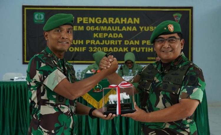 HARITA.ID – Komandan Korem 064/Maulana Yusuf, Brigjen TNI Tatang Subarna memberikan pengarahan kepada seluruh prajurit dan Persit Yonif 320/Badak Putih dalam kunjungan kerja yang digelar, Senin 21 November 2022.