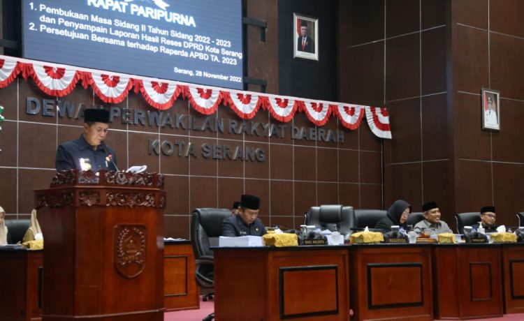Kegiatan Rapat Paripurna tersebut dilakukan terkait dengan Pembukaan Masa Sidang II Tahun Anggaran 2022-2023 dan Penyampaian hasil reses DPRD Kota Serang sekaligus penandatanganan berita acara persetujuan bersama terhadap Raperda APBD Kota Serang TA 2023.