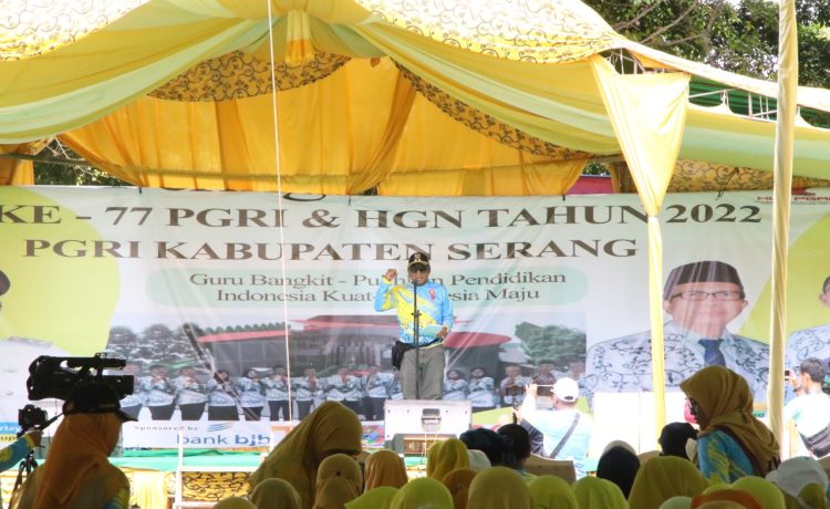 HARITA.ID – Wakil Bupati (Wabup) Serang Pandji Tirtayasa mengungkapkan, dengan digelarnya Peringatan Hari Ulang Tahun (HUT) Persatuan Guru Republik Indonesia (PGRI) dan Hari Guru Nasional (HGN) yang jatuh pada 25 November 2022 merupakan bentuk penghormatan dan penghargaan bagi para guru atau pendidik.