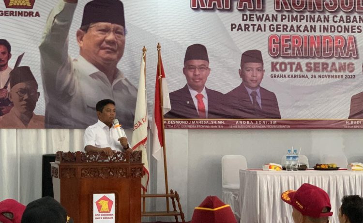 HARITA.ID – Dewan Pengurus Daerah (DPD) Gerindra Banten terbuka untuk Walikota Cilegon untuk berlabuh ke Gerindra, Sekjen DPD Gerindra Banten memberikan PR Walikota Cilegon untuk hantarkan Prabowo menjadi Presiden.