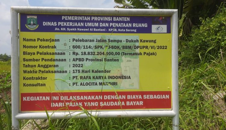 Di ketahui sumber anggaran pelebaran jalan Sempu-Dukung Kawung kota Serang yang saat ini sudah selesai bersumber dari APBD Provinsi Banten tahun anggaran 2022, pagu anggaran sebesar Rp.18.832.204.000,00. Pelaksana PT Rafa Karya Indonesia, konsultan PT Alocita Mandiri.