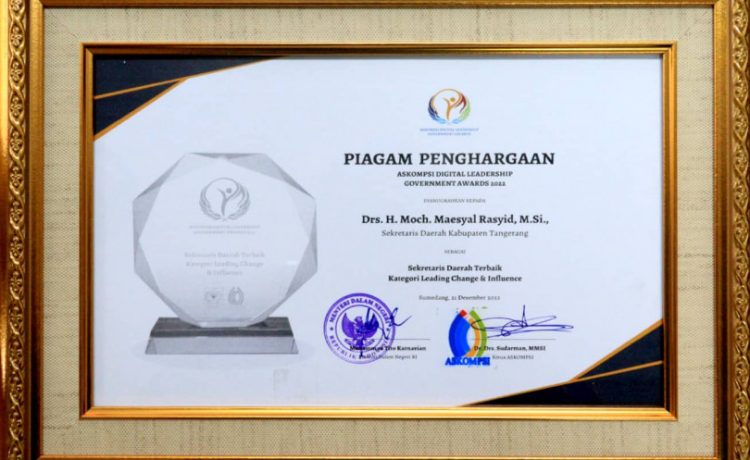 HARITA.ID – Sekretaris Daerah (Sekda) Kabupaten Tangerang Moch. Maesyal Rasyid menerima penghargaan dengan kategori Leading Change & Influences. Penghargaan tersebut diraih dalam ajang Asosiasi Dinas Komunikasi dan Informatika Provinsi Seluruh Indonesia (Askompsi) Digital Leadership Government Awards 2022