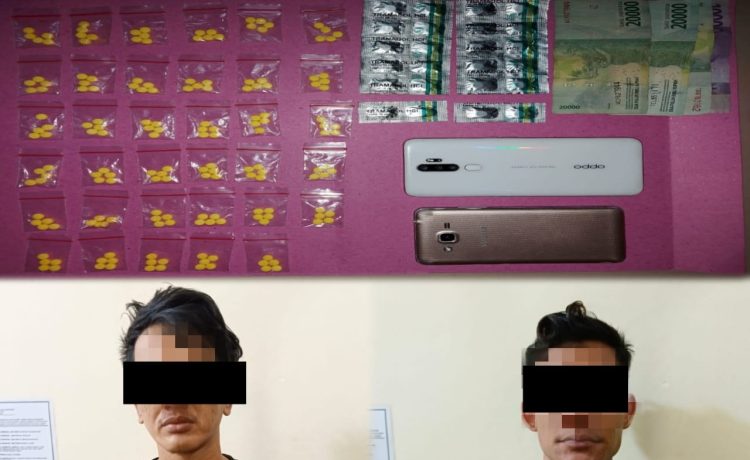 “Dan Dari keduanya kami berhasil mengamankan barang bukti berupa 175 (seratus tujuh puluh lima) butir obat warna kuning berlogo MF jenis Hexymer, 24 (dua puluh empat) butir obat jenis Tramadol HCI, uang tunai hasil penjualan sebesar Rp. 70.000 (tujuh puluh ribu rupiah), 1 (satu) unit handphone Merek Oppo tipe A5 warna Putih, 1 (satu) unit handphone Merek Samsung tipe J2 Prime warna Gold,” lanjut Malik.