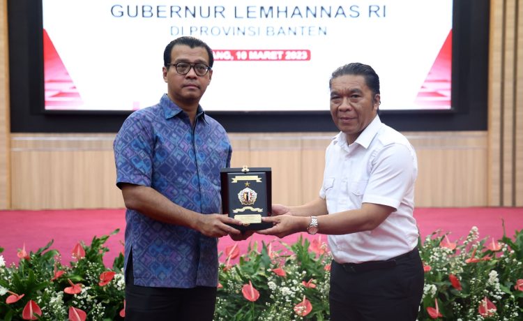 HARITA.ID – Penjabat (Pj) Gubernur Banten Al Muktabar menerima Kunjungan Kerja Gubernur Lembaga Ketahanan Nasional (Lemhannas) Republik Indonesia Andi Widjajanto beserta rombongan di Pendopo Gubernur Banten, KP3B Curug, Kota Serang, Jum’at 10 Maret 2023.
