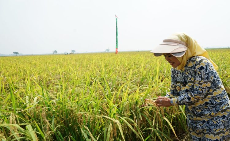 Panen dinilai sukses karena mampu menghasilkan gabah hingga 9 ton per hektare.