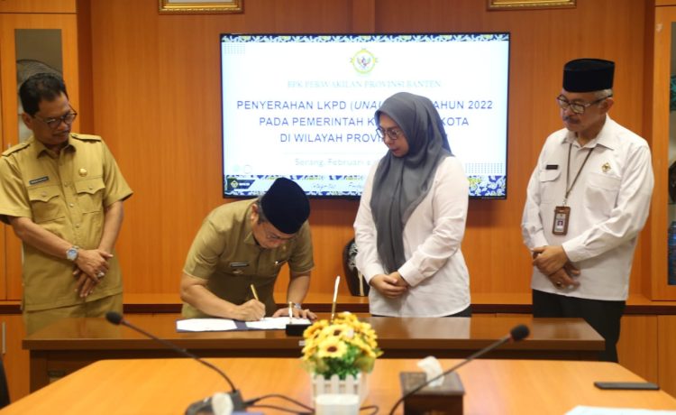 HARITA.ID – Wakil Walikota Serang Subadri Ushuluddin berkesempatan hadir sekaligus menyerahkan langsung Laporan Keuangan Pemerintah Daerah (LKPD) Kota Serang Tahun anggaran 2022 kepada Badan Pemeriksa Keuangan (BPK) perwakilan Provinsi Banten, Senin 27 Maret 2023.