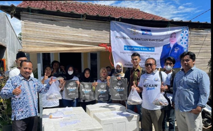 HARITA.ID – Dalam rangka percepatan penanganan stunting dan gizi buruk, Anggota Komisi IV DPR RI Dapil Banten II, Fraksi Partai Demokrat, Hj. Nuraeni memberikan bantuan ikan segar kepada masyarakat Kota Serang di aula PPN Karangantu, Kecamatan Kasemen, Kota Serang, Selasa 11 April 2023.