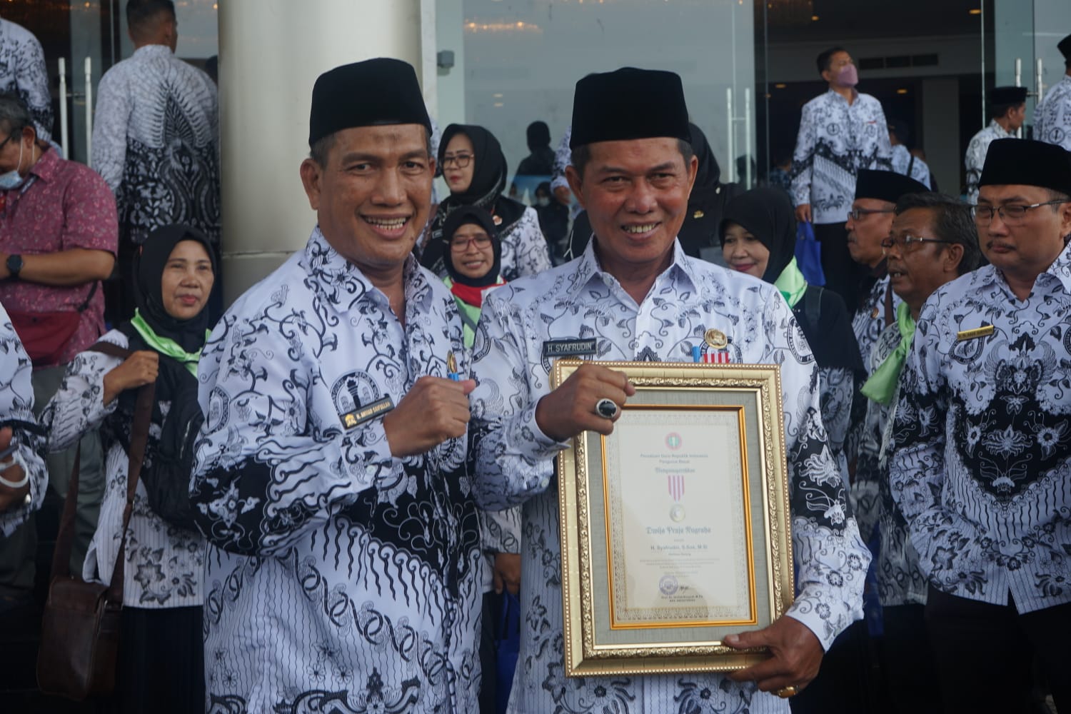Penghargaan Dwija Praja Nugraha tersebut merupakan anugrah yang diberikan pengurus besar PGRI tingkat Nasional kepada Kepala Daerah yang memiliki perhatian dan komitmen lebih terhadap pendidikan dan kesejahteraan guru. (Adv)