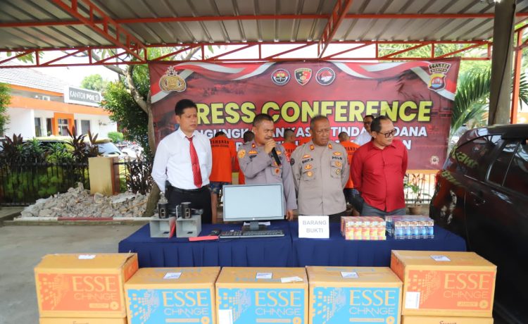 HARITA.ID – Polsek Cilegon Polres Cilegon tangkap lima orang tersangka yang di duga melakukan pencurian di sebuah gudang rokok yang ada di Cilegon.