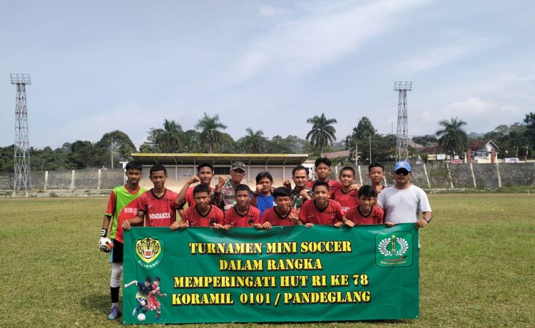 HARITA.ID – Dalam rangka menyambut hari ulang tahun Kemerdekaan Republik Indonesia ke-78 Koramil 0101/Pandeglang Kodim 0601/Pandeglang menggelar kegiatan turnamen mini soccer, Senin 14 Agustus 2023.