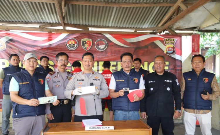 Pada saat Press Conference kasus tindak Pidana Pencurian yang dilaksanakan di halaman Polsek Pulomerak, Kapolsek Pulomerak Polres Cilegon Polda Banten Kompol Entang Cahyadi menjelaskan.