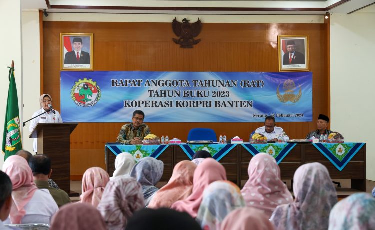 HARITA.ID – Penjabat Sekretaris Daerah (Pj Sekda) Provinsi Banten Virgojanti membuka Rapat Anggota Tahunan (RAT) Tahun Buku 2023 Koperasi Pegawai Republik Indonesia (KPRI) Korpri Banten yang berlangsung di Gedung Korpri Banten Jl. Raya Petir-Serang, Cilaku, Kota Serang, Rabu 28 Februari 2024.