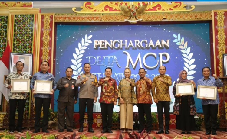 Sertifikat penghargaan diterima oleh Penjabat (Pj) Gubernur Banten Al Muktabar yang diberikan dalam kegiatan Pemberian Penghargaan MCP 2023 pada rangkaian Rapat Koordinasi Pemberantasan Korupsi Pemerintah Daerah se-Wilayah II Tahun 2024 di Joglo Griya Agung Palembang, Sumatera Selatan, Selasa 23 April 2024.