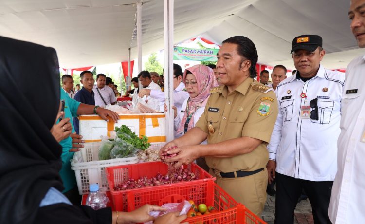 HARITA.ID- Penjabat (Pj) Gubernur Banten Al Muktabar membuka Bazar Pasar Murah Musabaqah Tilawatil Quran (MTQ) XXI Provinsi Banten Tahun 2024 di Lapangan Pancaniti, KP3B, Curug Kota Serang, Rabu (24/7/2024). Pemerintah Provinsi Banten melalui Dinas Perindustrian dan Perdagangan menghadirkan berbagai produk mulai dari kebutuhan pokok, sayuran, buah, makanan kuliner, hingga kerajinan wastra Banten.