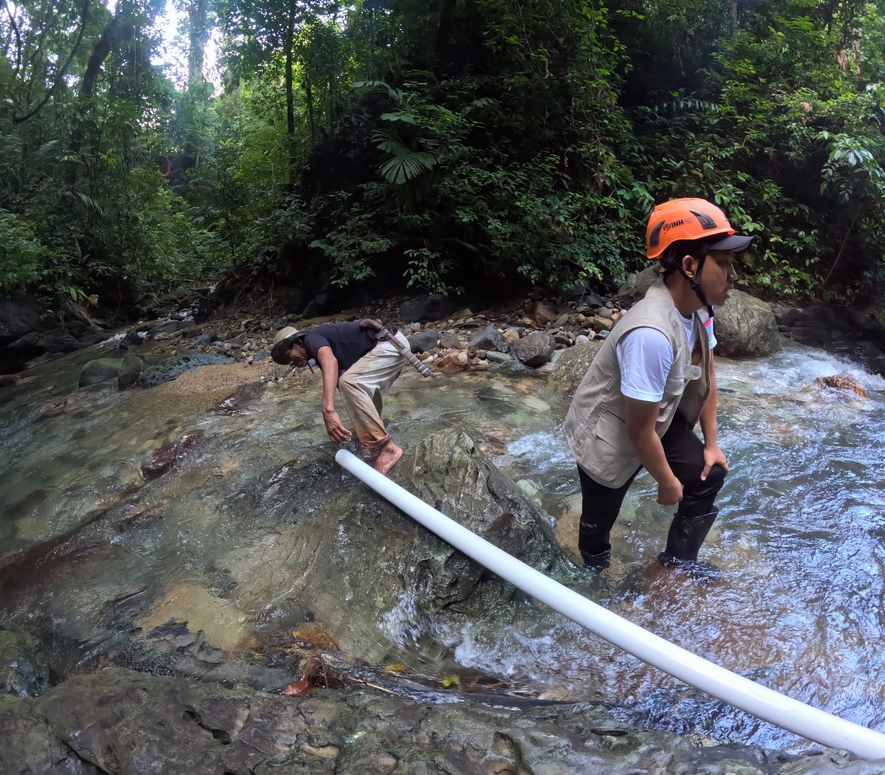 Mengandalkan semangat gotong royong, tim INH bersama warga menyambungkan pipa dari sumber mata air Curug Cikacang yang berjarak sekitar 2 kilometer. Air dialirkan menuju penampungan berkapasitas 1.000 liter, yang kini menjadi sumber kehidupan bagi sekitar 100 jiwa warga pra sejahtera di kampung tersebut.