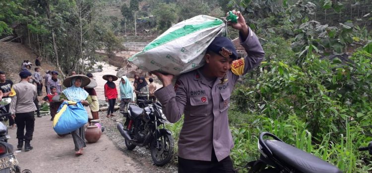 LEBAK - Kabupaten Lebak (Banten). Kegiatan bantuan kepada korban yang terkena dampak banjir, akibat guyuran hujan deras di Desa Hegarmanah Kecamatan Cibeber Kabupaten Lebak oleh personel Satbrimobda Banten Kompi 2 Batalyon B Pelopor, hujan terjadi sejak Jumat (06/12/2019) kemarin sore....