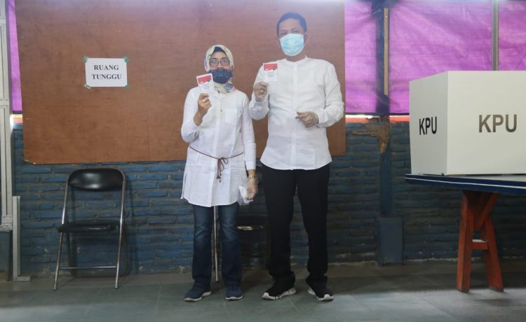 CILEGON – Calon Walikota Cilegon Haji Ali Mujahidin yang maju melalui jalur independen menggunakan hak suaranya di TPS 10 komplek Perumahan BBS 2 Kelurahan Ciwedus, Kecamatan Cilegon, Kota Cilegon, Rabu (09/12/2020).
