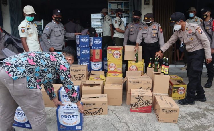 “Kita langsung datangi sejumlah toko dan melakukan pemeriksan dan penggeledahan di dalam toko tersebut. Dan kita berhasil menemukan ratusan botol miras dari berbagai jenis dan merek yang tersimpan di dalam gudang sehingga kita lakukan penyitaan dan mengamankan ratusan botol miras,” katanya.