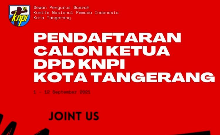 TANGERANG — Dewan Pengurus Daerah Komite Nasional Pemuda Indonesia (DPD KNPI) Kota Tangerang akan menggelar Musyawarah Daerah (Musda) IX dengan agenda utama pemilihan ketua baru. Pendaftaran calon Ketua DPD KNPI Kota Tangerang dibuka mulai 1 – 12 September 2021.
