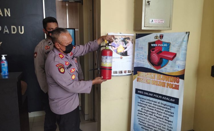 CILEGON – Kepolisian Sektor Kawasan Pelabuhan (KSKP) Merak melakukan pengecekan Apar untuk mencegah bahaya kebakaran serta kesiapan anggota yang melaksanakan kedinasan, Kamis (16/09/2021).
