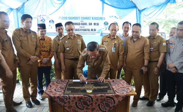 Peresmian Kantor Kelurahan kasunyatan tersebut juga dirangkaikan dengan kegiatan pisah sambut antara Camat Kasemen lama Ahmad Nuri kepada Camat Kasemen baru Kristiyanto.