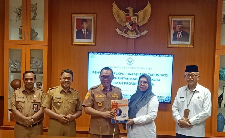 HARITA.ID – Pemkot Cilegon menyerahkan Laporan Keuangan Pemerintah Daerah (LKPD) kepada Badan Pemeriksa Keuangan (BPK), di kantor BPK RI Perwakilan Banten, Kota Serang, Senin 27 Maret 2023.
