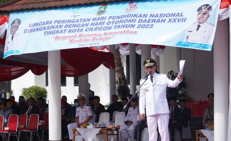 “Kota Cilegon juga telah membebaskan siswa dari uang LKS (Lembar Kerja Siswa). Atas dasar itu, saya menghimbau kepada seluruh perangkat sekolah untuk tidak meminta uang LKS kepada siswa,” kata Wali Kota Cilegon Helldy Agustian saat Upacara Memperingati Hari Pendidikan Nasional (Hardiknas) di Halaman Kantor Pemerintah Kota (Pemkot) Cilegon, Selasa 02 Mei 2023.