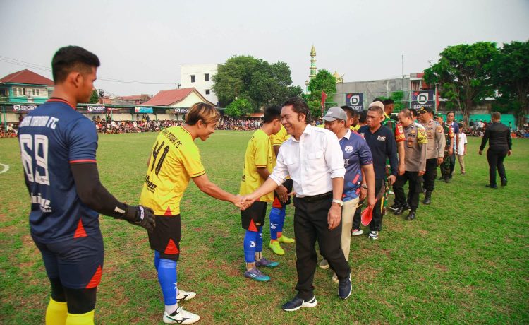 HARITA.ID – Penjabat Gubernur Banten Al Muktabar kick off (sepak awal) partai final Open Tournament Paku Jaya Cup VIII Tahun 2023 di Stadion Mini Kelurahan Paku Jaya Kecamatan Serpong Utara Kota Tangerang Selatan, Minggu petang, 16 Juli 2023.