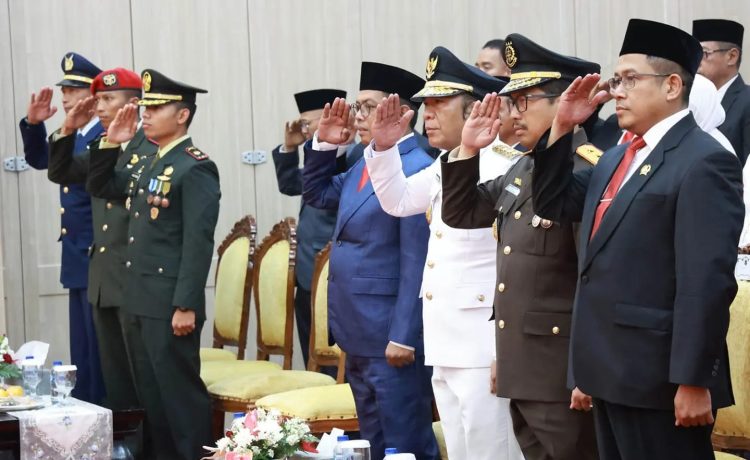 HARITA.ID – Penjabat Gubernur Banten Al Muktabar bersama Forum Koordinasi Pimpinan Daerah (Forkopimda) Provinsi Banten mengikuti Upacara Peringatan Detik-Detik Proklamasi dalam rangka memperingati Hari Kemerdekaan Ke-78 Republik Indonesia Tahun 2023 di Istana Negara secara virtual dari Pendopo Gubernur Banten, KP3B, Kota Serang, Kamis 17 Agustus 2023.