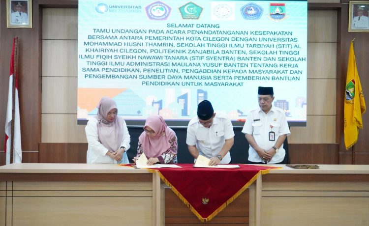Penandatanganan MoU itu dilakukan langsung oleh Wali Kota Cilegon Helldy Agustian bersama para ketua dan rektor dari kelima perguruan tinggi tersebut di Aula Setda II Kota Cilegon, Rabu 18 Oktober 2023. Turut menyaksikan Asda I Kota Cilegon Tatang Muftadi serta Kepala Dinas Pendidikan, Kebudayaan Kota Cilegon Heni Anita Susila.