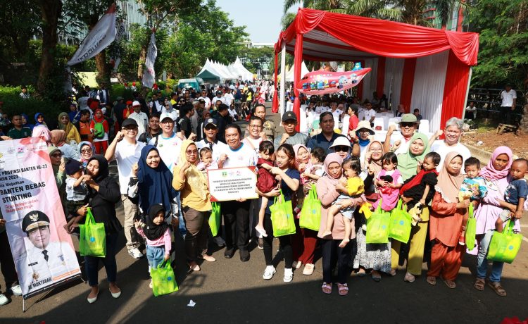 HARITA.ID – Rangkaian HUT Ke-23 Provinsi Banten, Pemerintah Provinsi (Pemprov) Banten menyalurkan Bantuan Sosial (Bansos) pada program penanganan kemiskinan ekstrem dalam rangka Ekspedisi Reformasi Birokrasi Tematik Berdampak di Lapangan Mall Pelayanan Publik (MPP) Kota Tangerang Selatan, Minggu 19 November 2023.