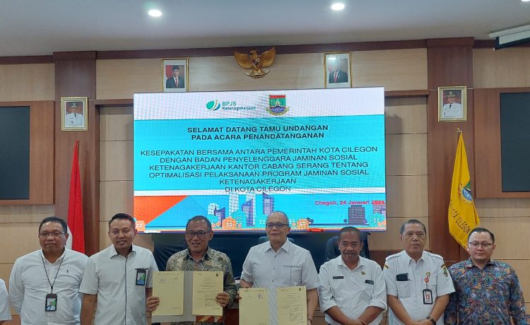 HARITA.ID – Badan Penyelenggara Jaminan Sosial (BPJS) Ketenaga Kerjaan bersama dengan Pemerintah Kota (Pemkot) Cilegon melaksanakan penandatanganan kesepakatan bersama persoalan pengoptimalisasi pelaksanaan program Jaminan Sosial (Jamsos) Ketenagakerjaan, Rabu 24 Januari 2024.